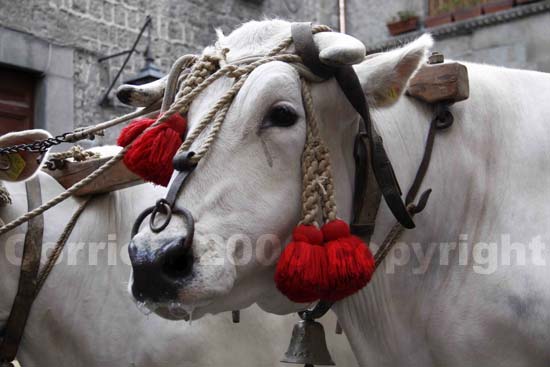 Due splendidi buoi di Lubriano hanno trasportato ieri, come è tradizione, l’antica pala del Santissimo Salvatore, che viene conservata nella chiesa di Santa Maria Nuova a Viterbo.